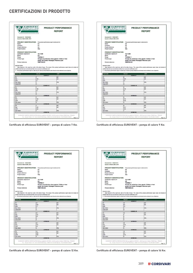 Certificato di efficienza EUROVENT - pompa di calore 16 Kw.