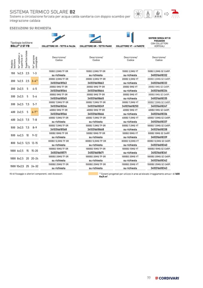 Sistemi progettati per utilizzo in aree ad elevato irraggiamento annuo > di 1600