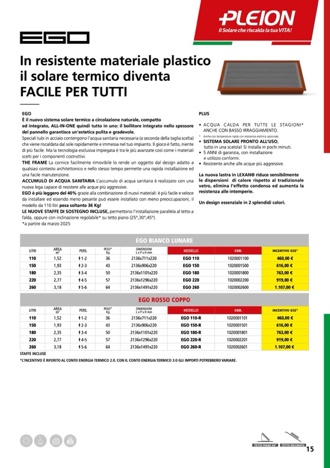 LE NUOVE STAFFE DI SOSTEGNO INCLUSE, permettono l’installazione parallela al tetto a