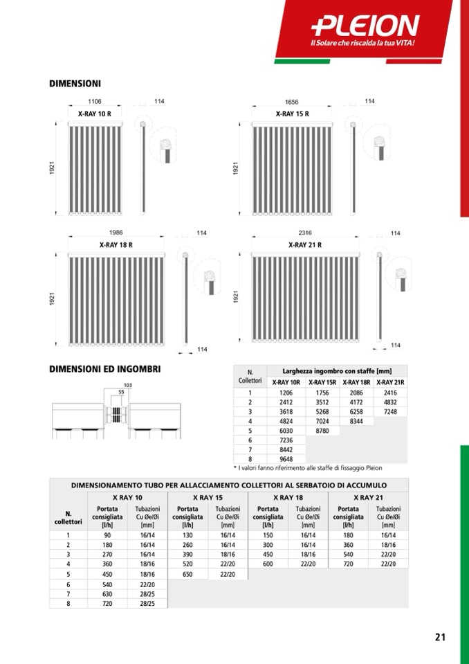 * I valori fanno riferimento alle staffe di fissaggio Pleion