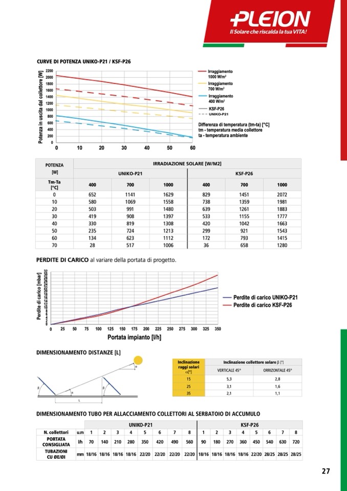 Differenza di temperatura (tm-ta) [°C] - tm temperatura media collettore - ta temperatura ambiente