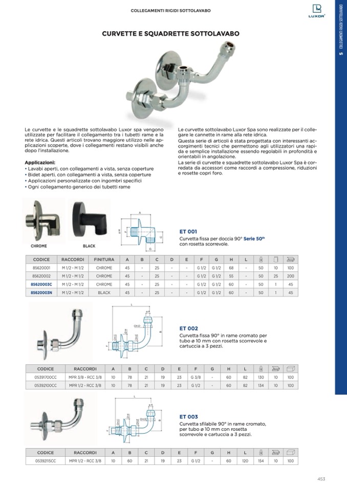 Le curvette e le squadrette sottolavabo Luxor spa vengono