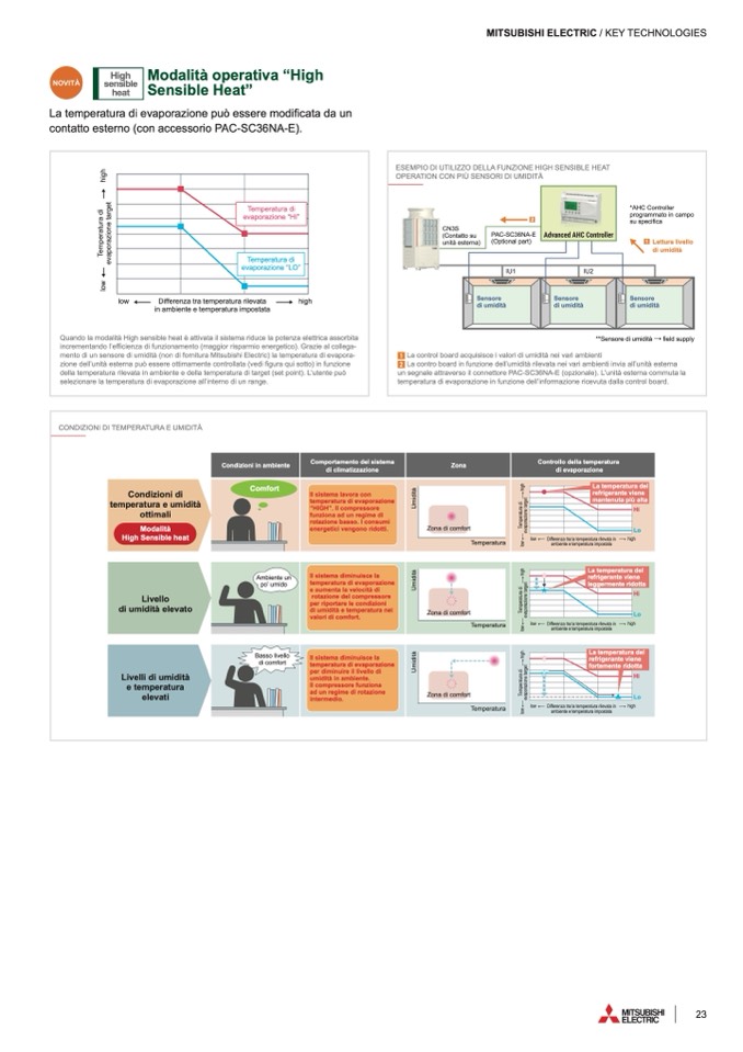 mento di un sensore di umidità (non di fornitura Mitsubishi Electric) la temperatura di evapora-