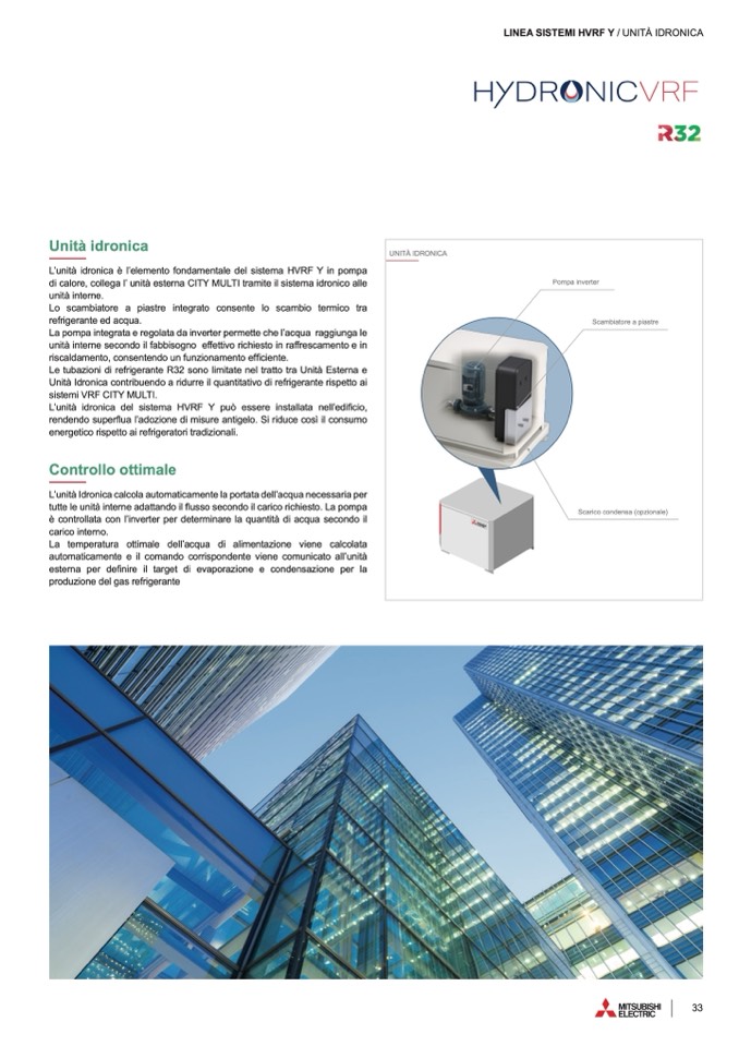 L’unità idronica è l’elemento fondamentale del sistema HVRF Y in pomp