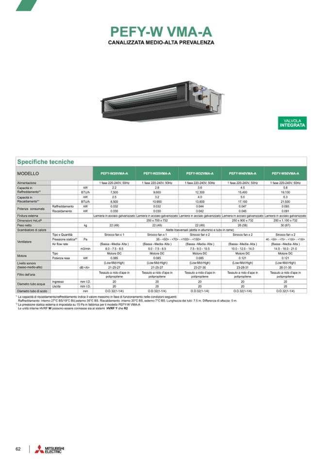 ione statica esterna è impostata su 15 Pa in fabbrica per il modello PEFY-W VMA-