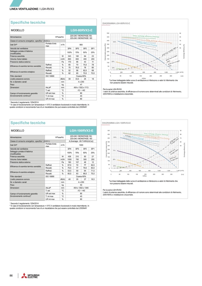 I valori di potenza assorbita, di efficienza e di rumore sono determinati alle condizioni di riferimento,