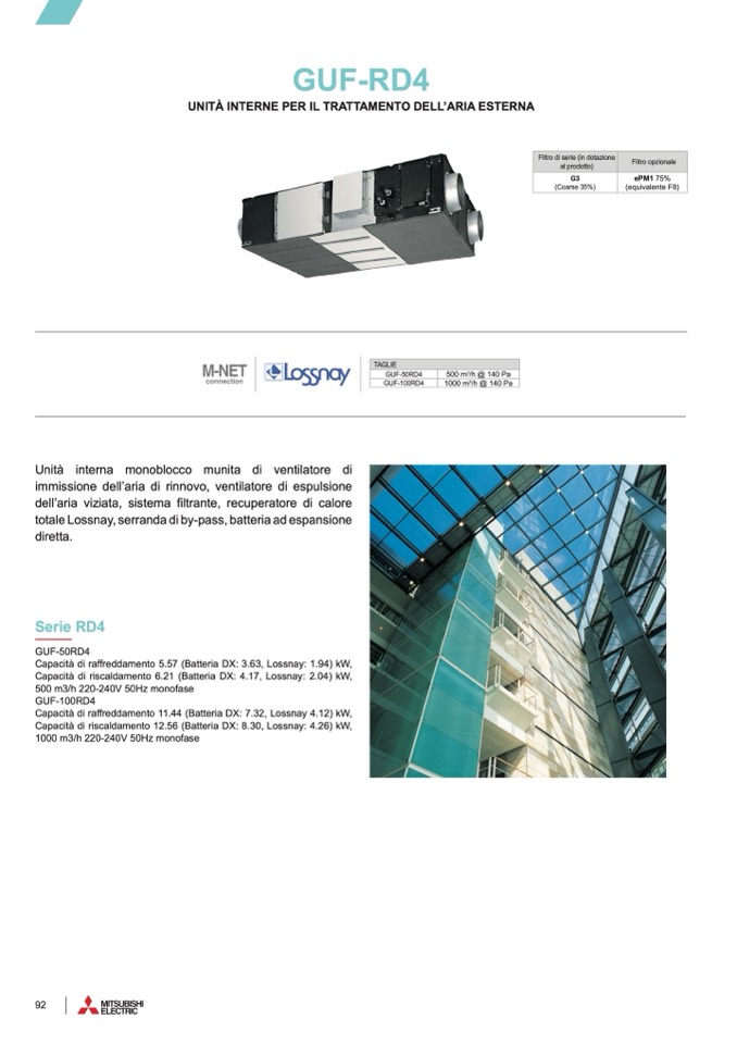 Capacità di raffreddamento 5.57 (Batteria DX: 3.63, Lossnay: 1.94) kW,