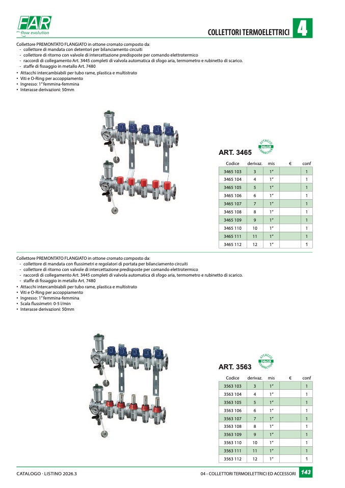 - collettore di ritorno con valvole di intercettazione predisposte per comando elettrotermico