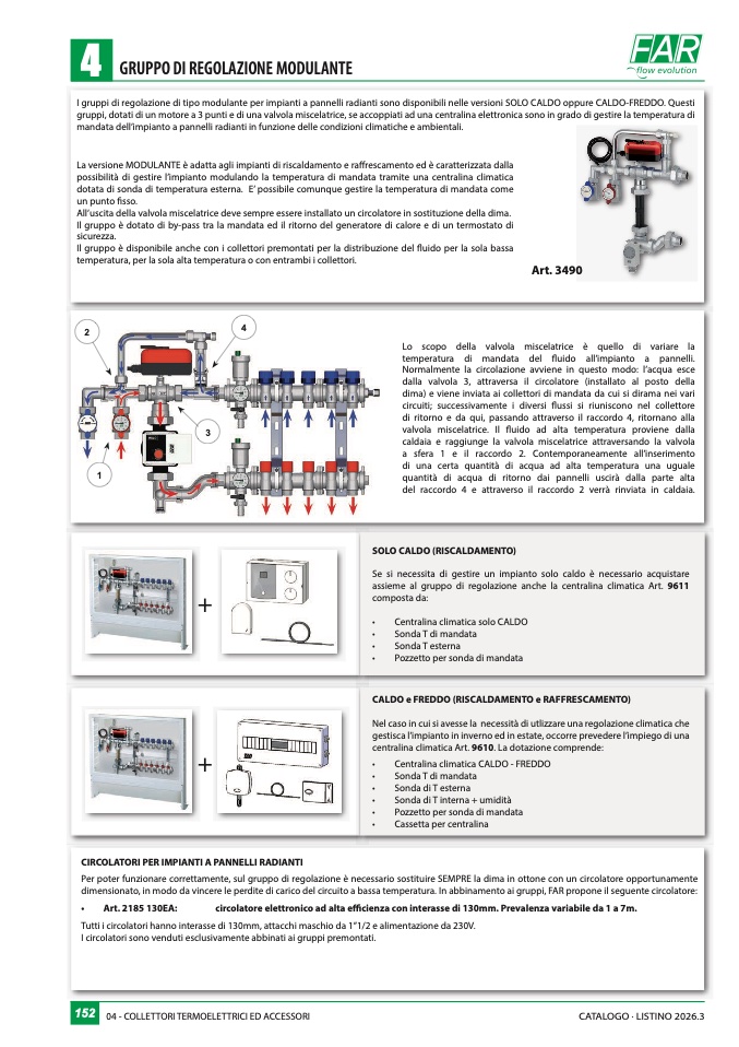 I gruppi di regolazione di tipo modulante per impianti a pannelli radianti sono disponibili nelle versioni SOLO CALDO oppure CALDO-FREDDO. Questi
