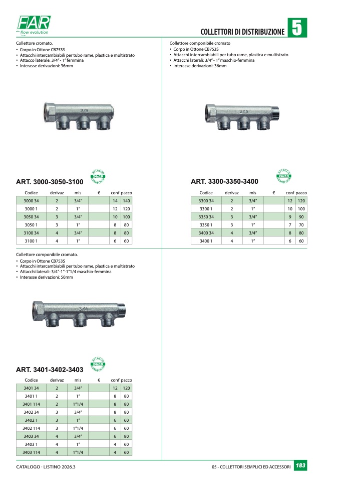 Attacchi laterali: 3/4”-1”-1”1/4 maschio-femmin