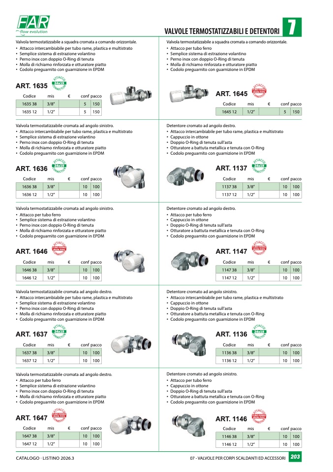 Valvola termostatizzabile a squadra cromata a comando orizzontale