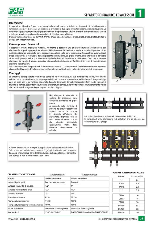 fianco è riportato un esempio di applicazione del separatore idraulico.