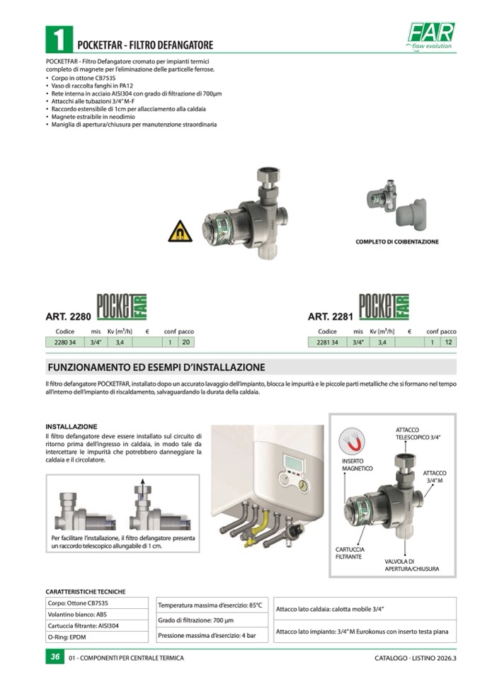 POCKETFAR - Filtro Defangatore cromato per impianti termic