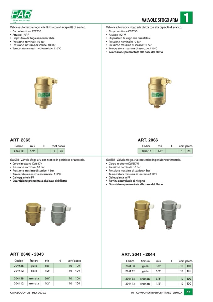 GAISER - Valvola sfogo aria con scarico in posizione orizzontale.