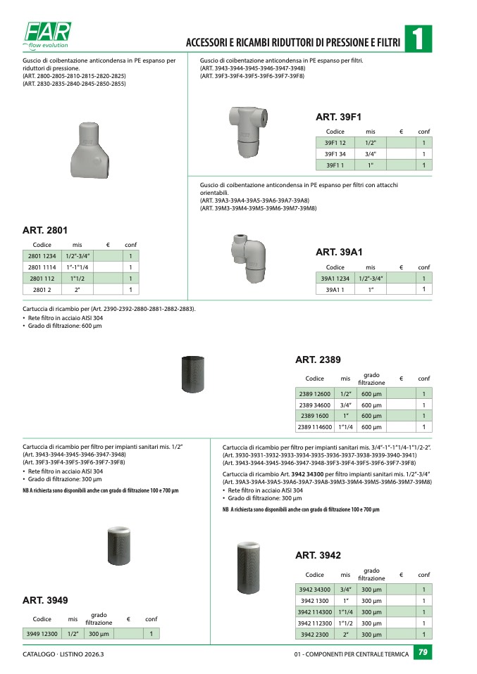 filtro per impianti sanitari mis. 3/4”-1”-1”1/4-1”1/2-2”