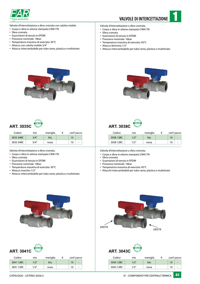 Valvola d’intercettazione a sfera cromata con calotta mobile.