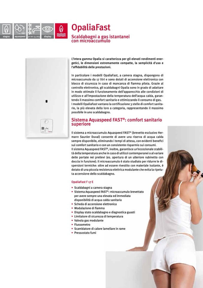 In particolare i modelli OpaliaFast, a camera stagna, dispongono di