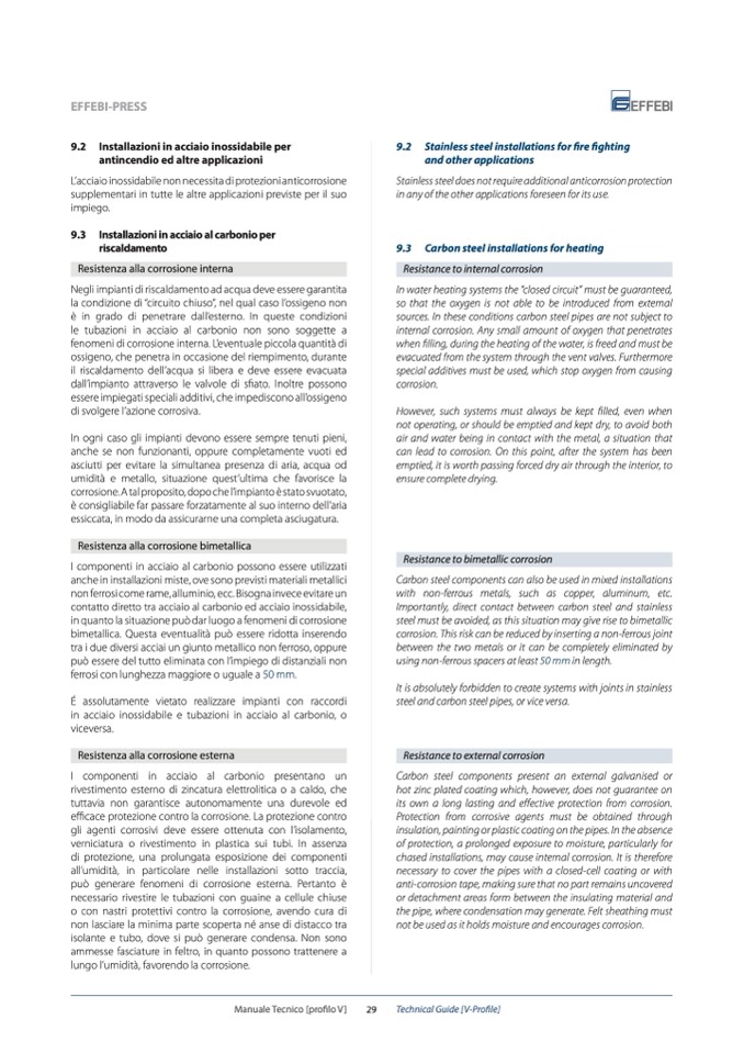 in acciaio inossidabile e tubazioni in acciaio al carbonio, o