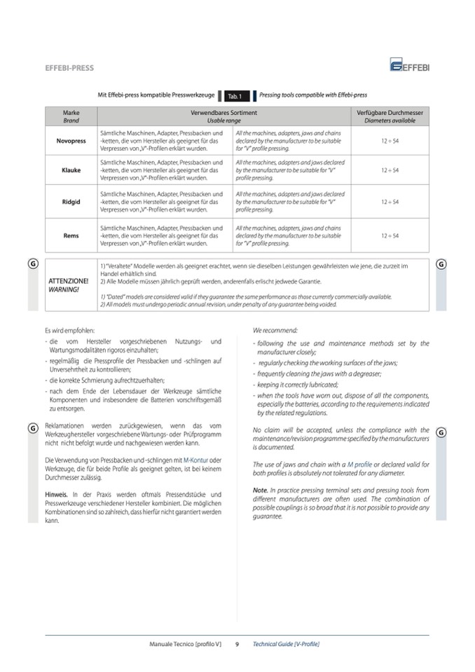 Presswerkzeuge verschiedener Hersteller kombiniert. Die möglichen