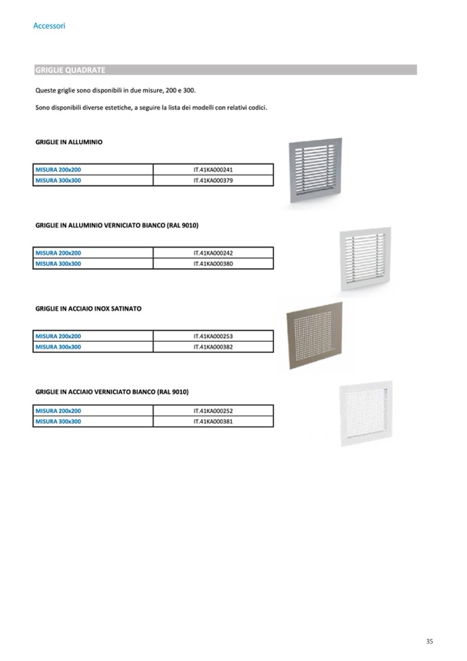 Queste griglie sono disponibili in due misure, 200 e 300.