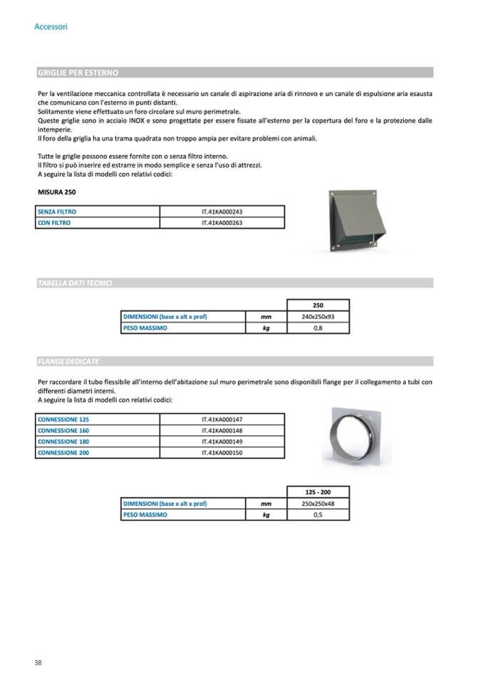 Per raccordare il tubo flessibile all’interno dell’abitazione sul muro perimetrale sono disponibili flange per il collegamento a tubi con