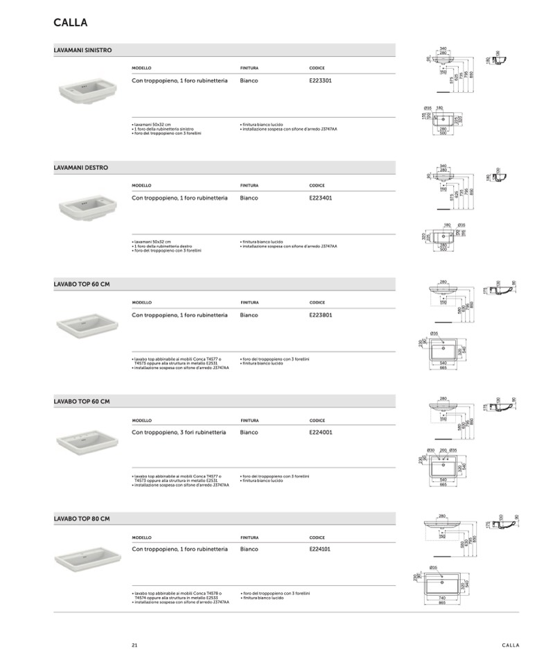• lavabo top abbinabile ai mobili Conca T4578 o