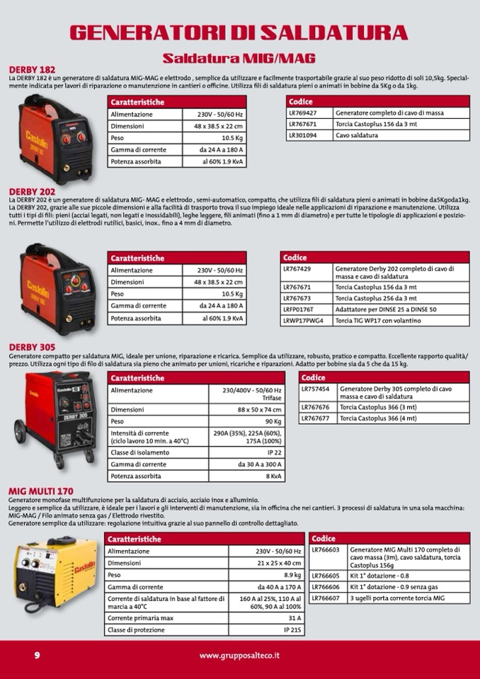 mente indicata per lavori di riparazione o manutenzione in cantieri o officine. Utilizza fili di saldatura pieni o animati in bobine da 5Kg o da 1kg.