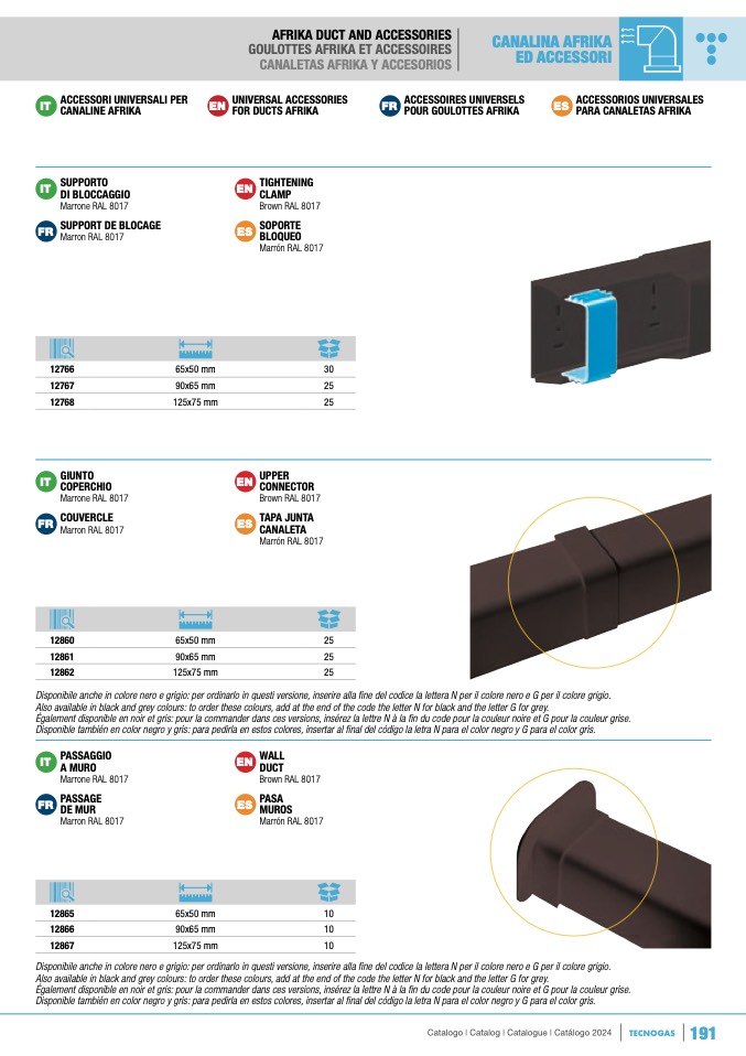 Also available in black and grey colours: to order these colours, add at the end of the code the letter N for black and the letter G for grey.
