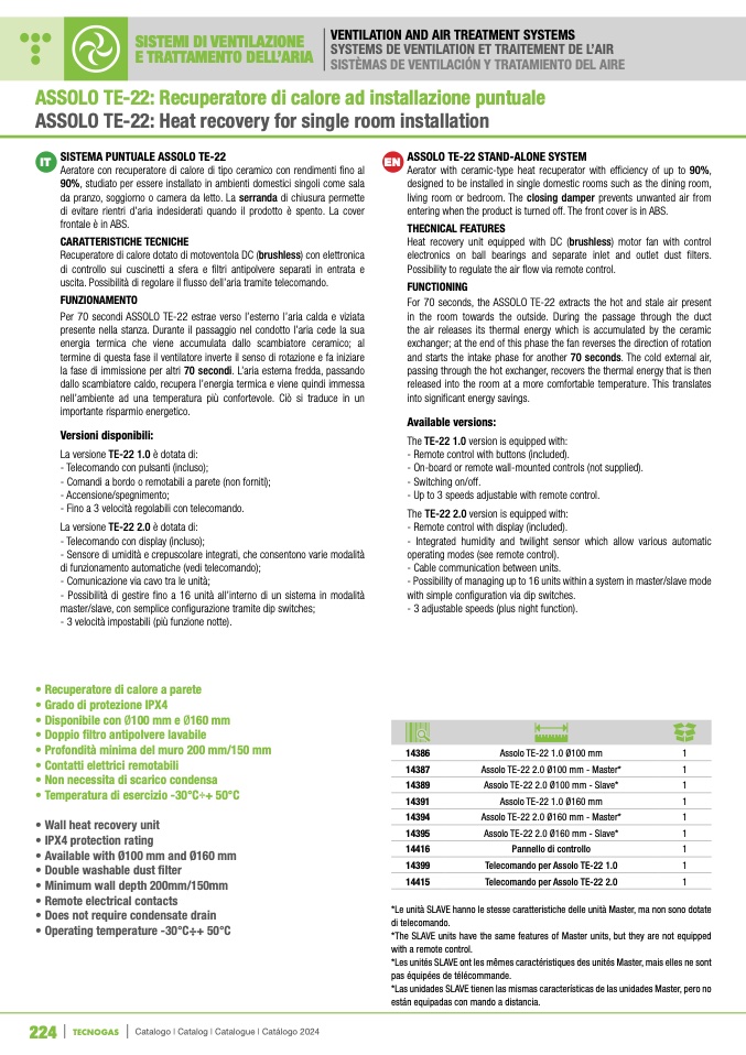 Per 70 secondi ASSOLO TE-22 estrae verso l’esterno l’aria calda e viziata