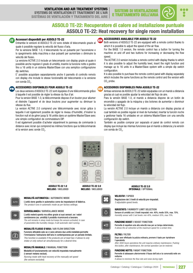 Entrambe le versioni di ASSOLO TE-22 sono dotate di telecomando grazie al