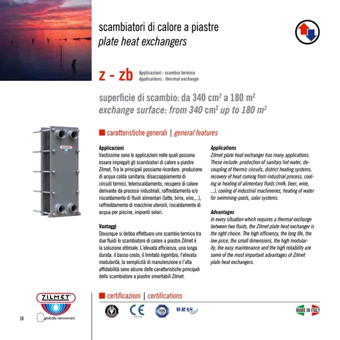 between two fluids, the Zilmet plate heat exchanger is