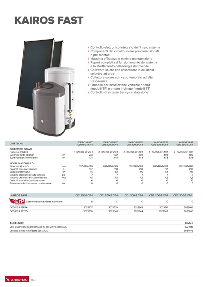 / Componenti del circuito solare pre-dimensionati