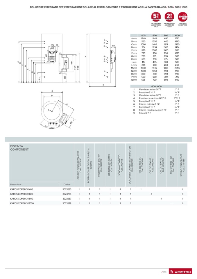 BOLLITORE INTEGRATO PER INTEGRAZIONE SOLARE AL RISCALDAMENTO E PRODUZIONE ACQUA SANITARIA 400 / 600 / 800 / 1000