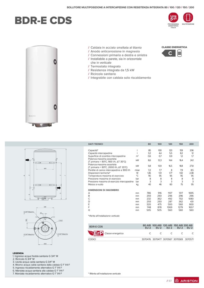 BOLLITORE MULTIPOSIZIONE A INTERCAPEDINE CON RESISTENZA INTEGRATA 80 / 100 / 120 / 150 / 200