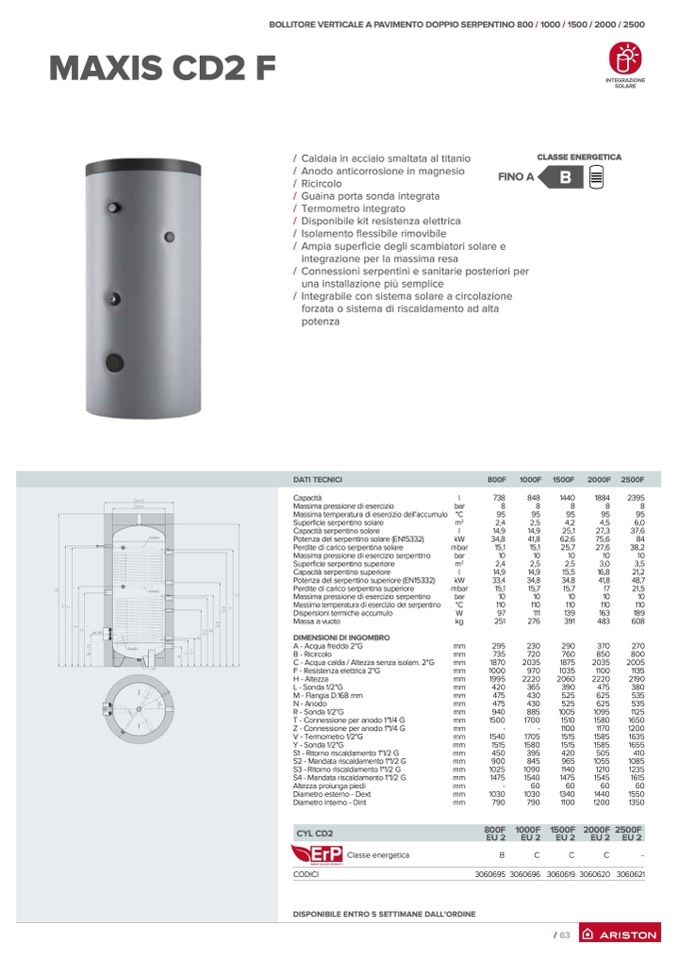 BOLLITORE VERTICALE A PAVIMENTO DOPPIO SERPENTINO 800 / 1000 / 1500 / 2000 / 2500