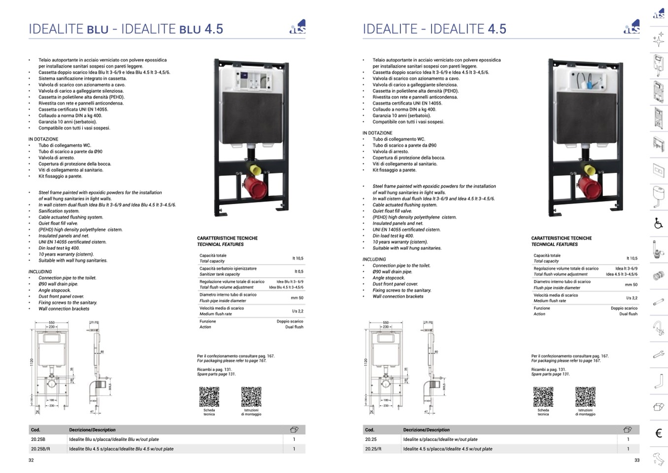In wall cistern dual flush Idea Blu lt 3-6/9 and Idea Blu 4.5 lt 3-4.5/6.