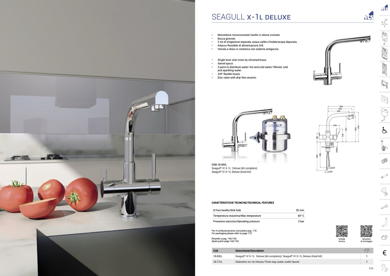 3 vie di erogazione separata, acqua calda e fredda/acqua depurata.