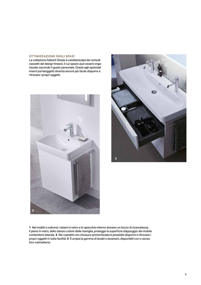 propri oggetti in tutta facilità. 3 È ampia la gamma di lavabi e lavamani, disponibili con o senza