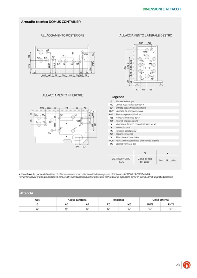 Attenzione: le quote delle dime di allacciamento sono riferite all’adesivo posto all’interno del DOMUS CONTAINER.