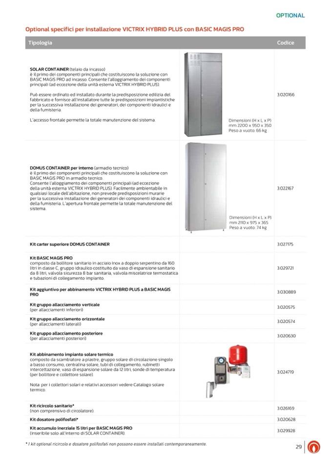 Nota: per i collettori solari e relativi accessori vedere Catalogo solare
