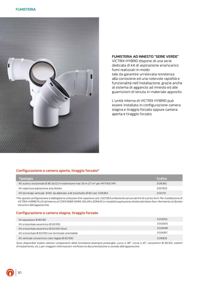 Sono disponibili inoltre ulteriori componenti della fumisteria (esempio prolunghe, curve a 90°, curve a 45°, concentrici Ø 80/125, sistemi