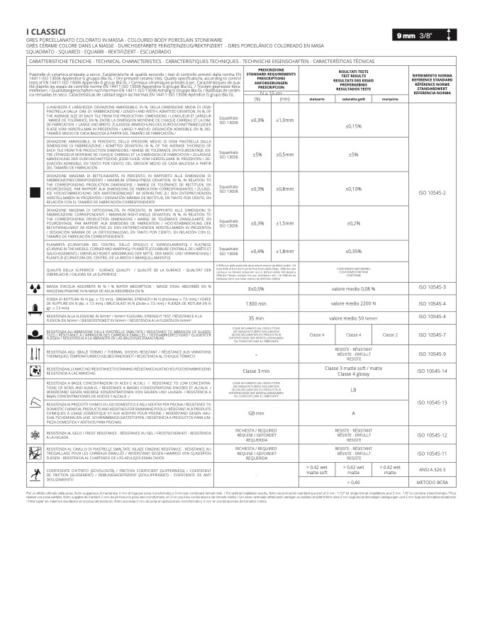 CARATTERISTICHE TECNICHE - TECHNICAL CHARACTERISTICS - CARACTERISTIQUES TECHNIQUES - TECHNISCHE EIGENSCHAFTEN - CARACTERÍSTICAS TÉCNICA