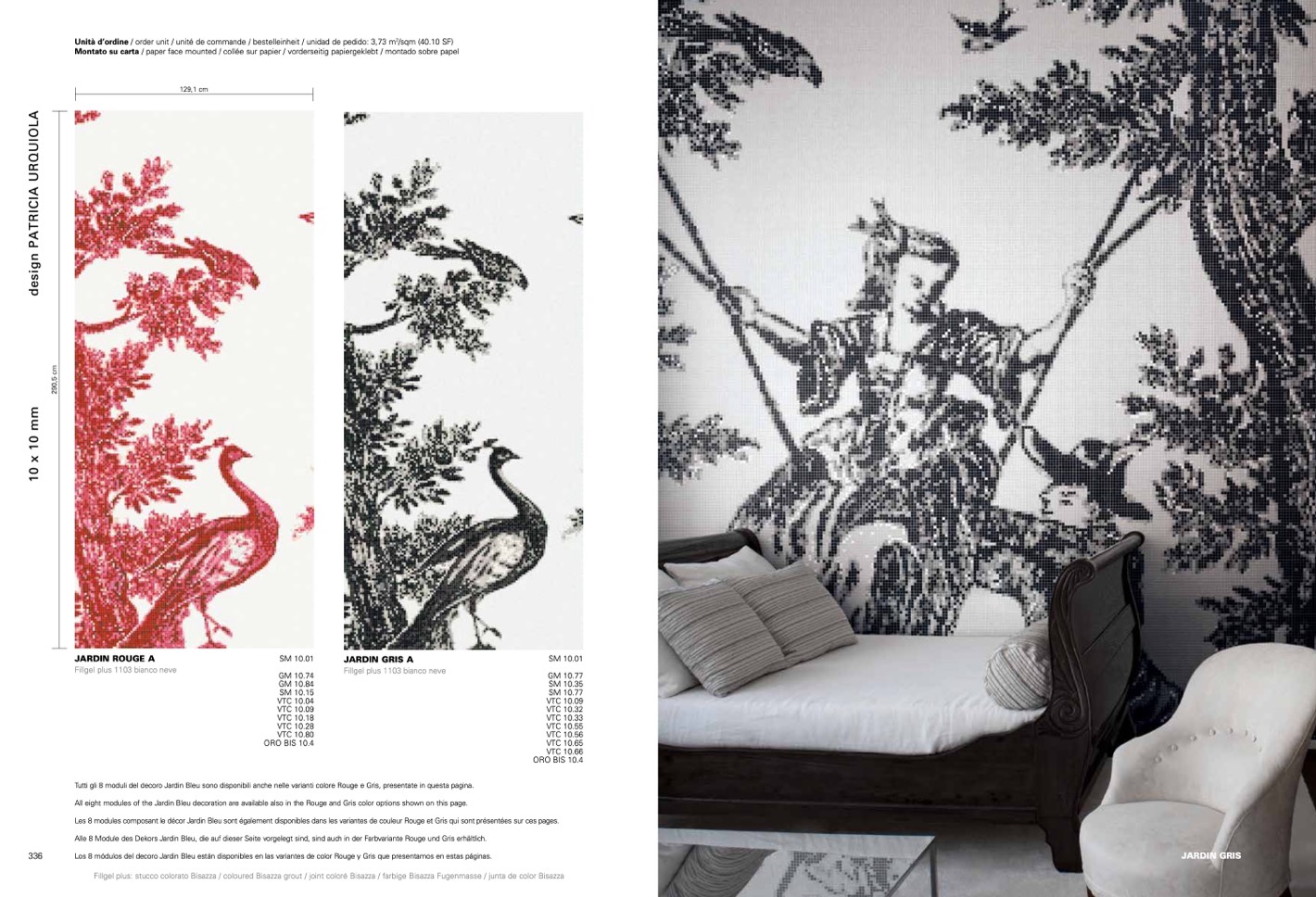 Tutti gli 8 moduli del decoro Jardin Bleu sono disponibili anche nelle varianti colore Rouge e Gris, presentate in questa pagina.