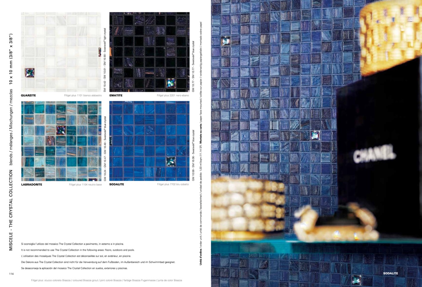 Si sconsiglia l’utilizzo del mosaico The Crystal Collection a pavimento, in esterno e in piscina.