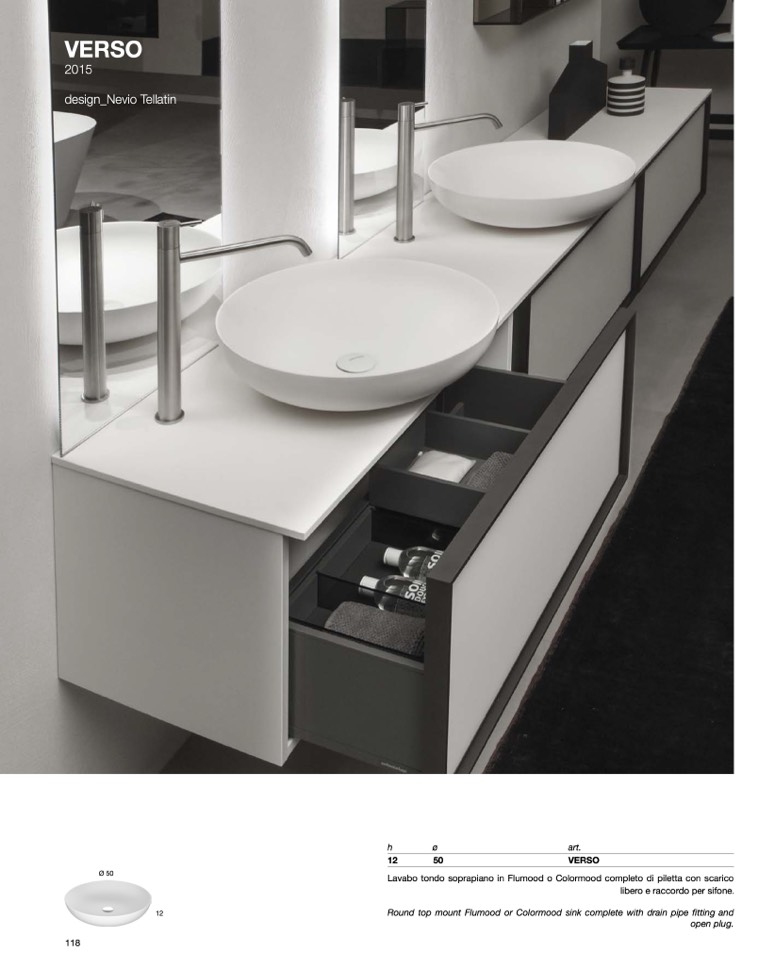 Lavabo tondo soprapiano in Flumood o Colormood completo di piletta con scarico
