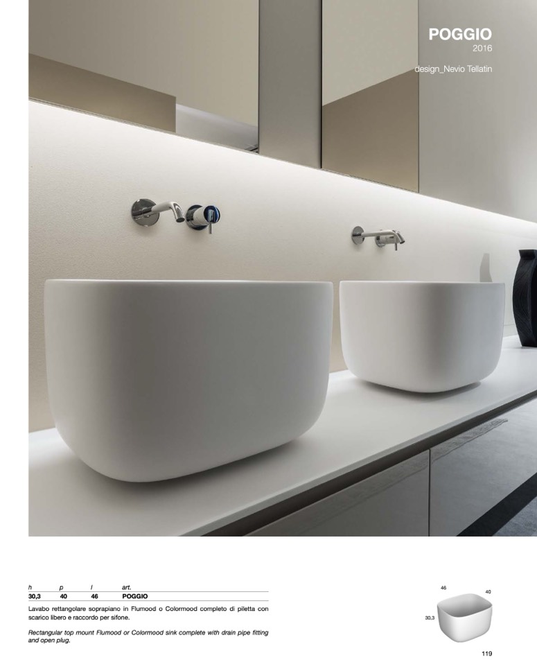 Lavabo rettangolare soprapiano in Flumood o Colormood completo di piletta con