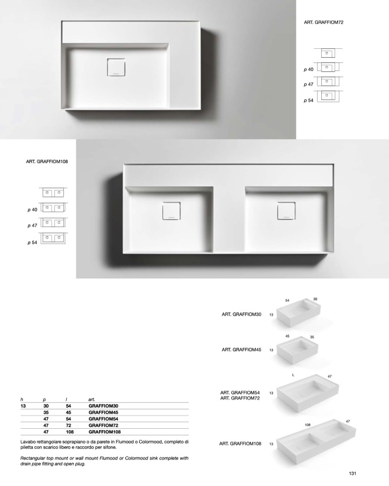 Rectangular top mount or wall mount Flumood or Colormood sink complete with