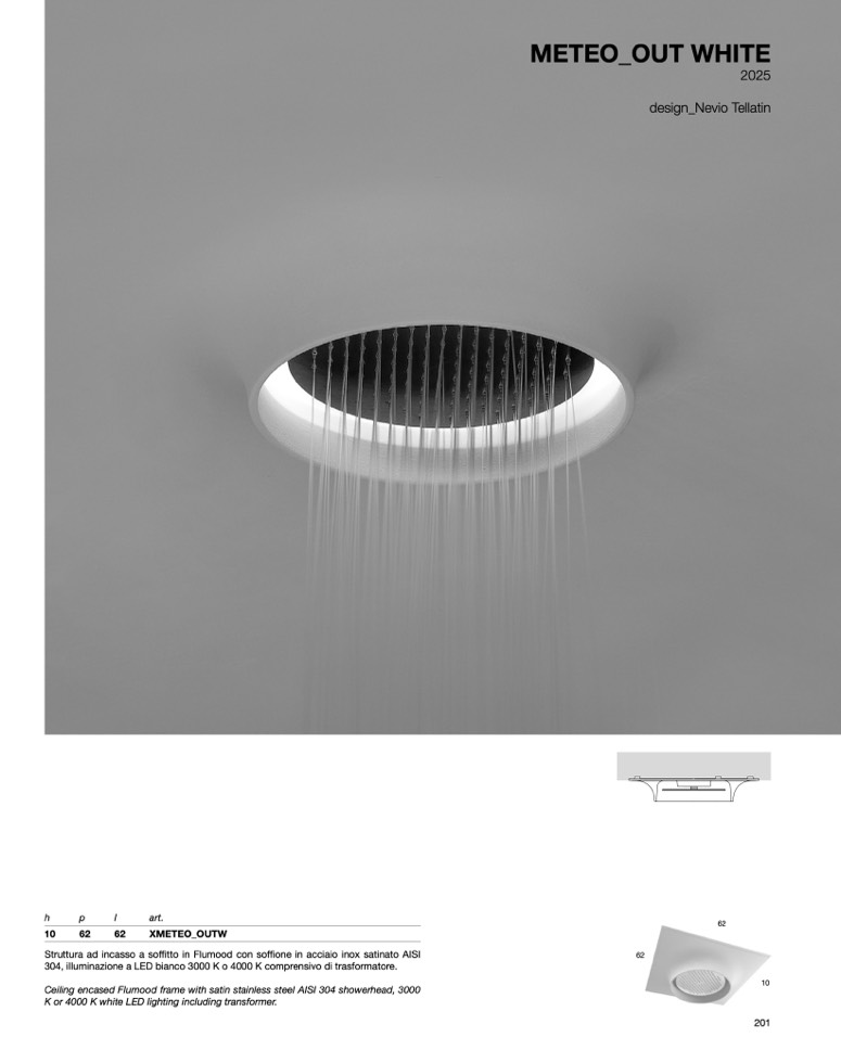 Ceiling encased Flumood frame with satin stainless steel AISI 304 showerhead, 3000