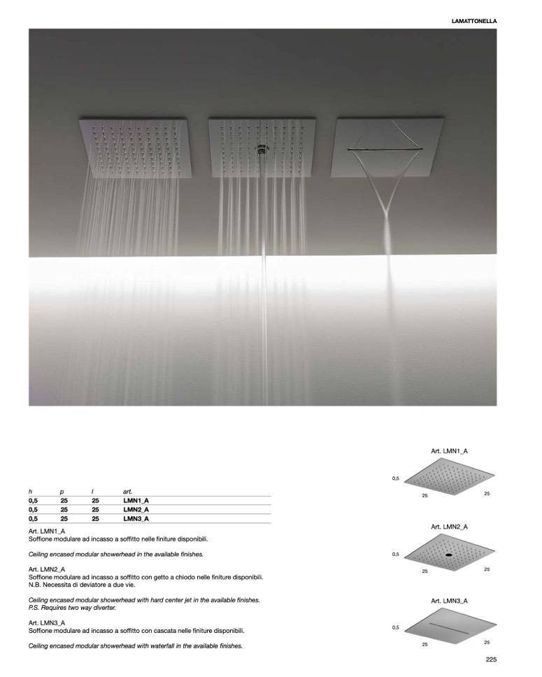Soffione modulare ad incasso a soffitto con cascata nelle