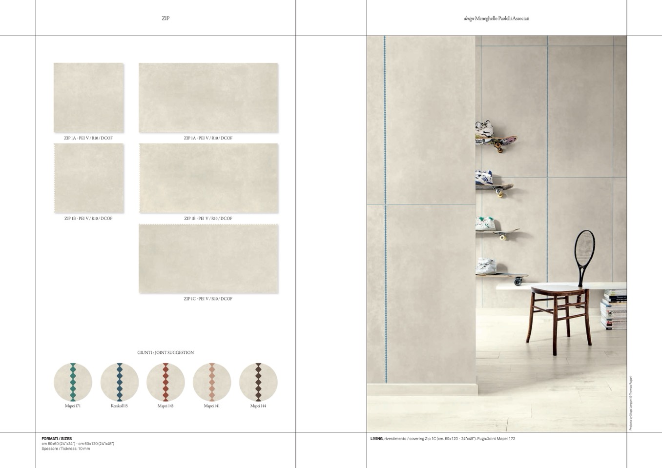 LIVING, rivestimento / covering Zip 1C (cm. 60x120 - 24”x48”). Fuga/Joint Mapei 172